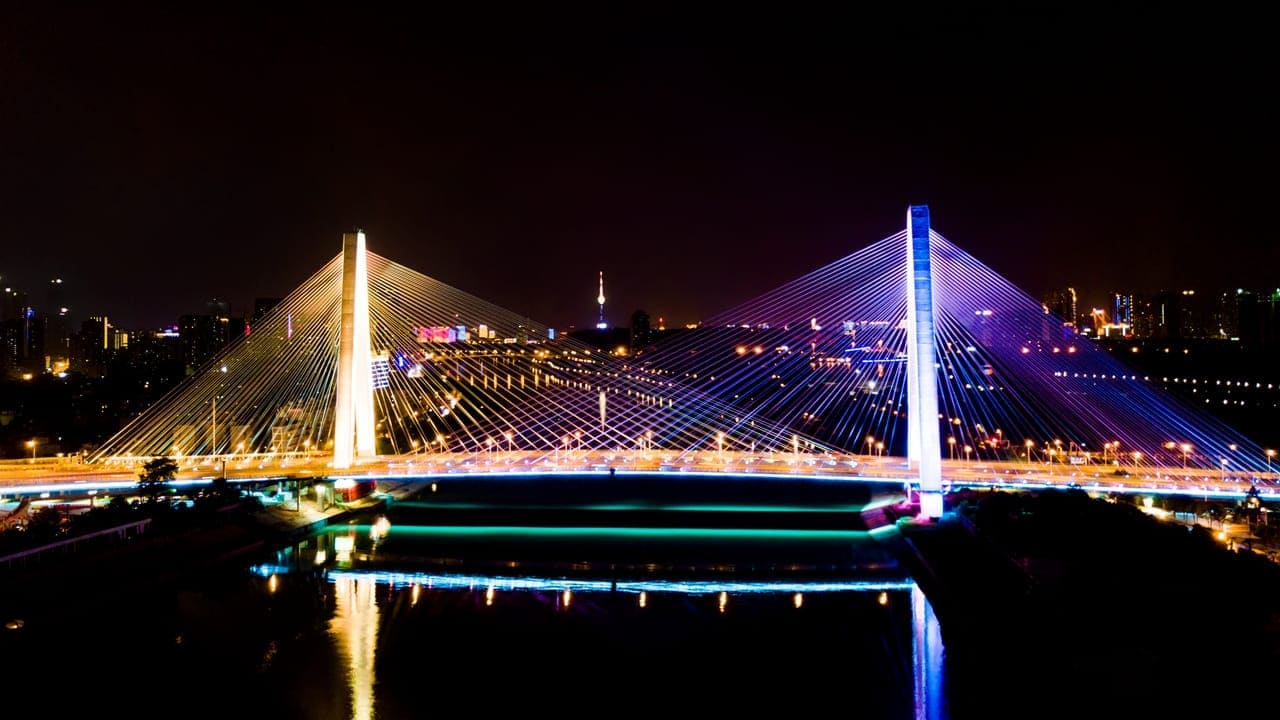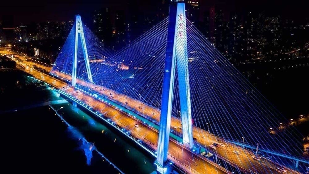 Yuehu Bridge, formerly known as the Fourth Jianghan Bridge, is a river-crossing passage connecting Hanyang District and Qiaokou District in Wuhan City, Hubei Province, China. It forms an integral part of the main urban arterial roads in western Wuhan. The government has undertaken expansion and renovation of the existing bridge, incorporating nighttime lighting design to imbue this single-tower cable-stayed bridge with a grand and powerful presence, conveying a landscape vision that reflects Wuhan's cultural characteristics.