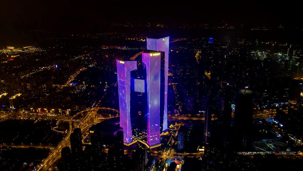 Located between Yunjin Road and the elevated Jiangdong Middle Road in Hexi New Town, Jianye District, Nanjing, Nanjing Golden Eagle World is the world's tallest triple-tower connected complex and the largest full-life center in Asia. It aims to become a benchmark commercial landmark in East China and even across the nation.
