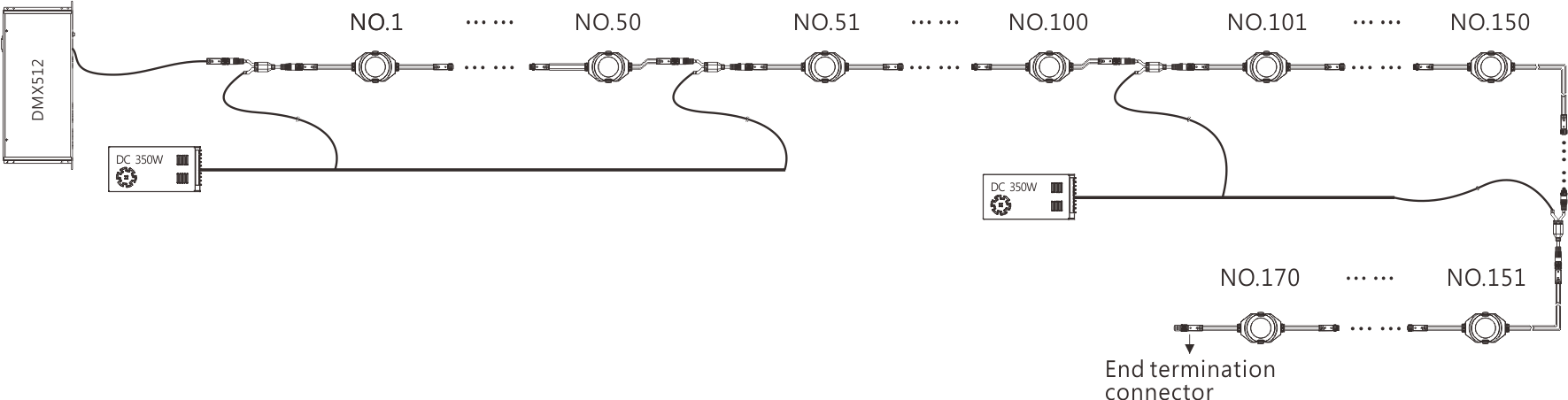 The maximum serial number of power supply 50 PCS (within 30 meters), signal serial transmission distance of 100 meters.