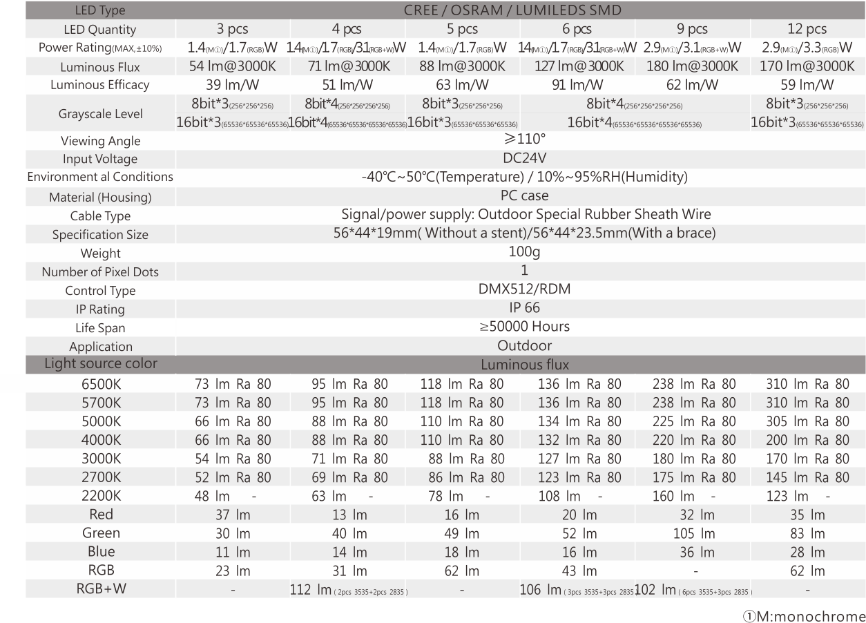 Matching functions: EMC (electromagnetic compatibility) ; Standard Rdm two-way feedback; low-glow anti-jitter function; Gamma Correction.