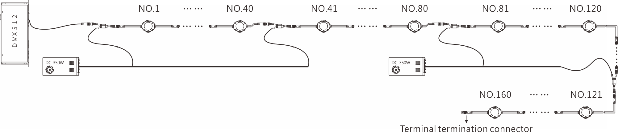 A single power circuit can be connected 10 meters in series, reducing wiring and difficulty in construction.