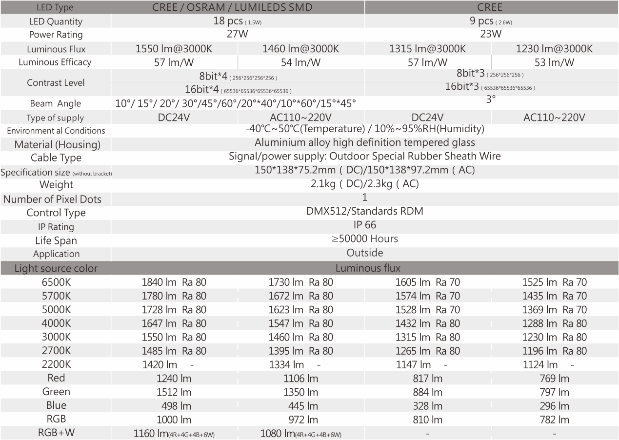 RGBW high-power projection lamp, suitable for outdoor high-grade, high-demand buildings, park landscape, ancient buildings floodlight use, good light mixing effect.