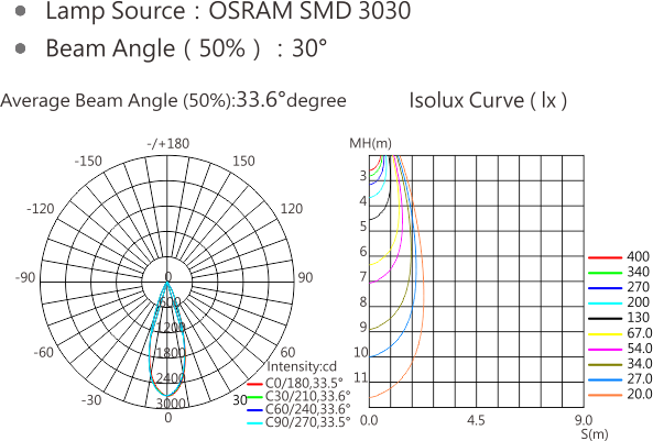Anti-glare angle up to 30 ° , a variety of luminous angle can be selected. AC110 ~ 220V or DC24V input.